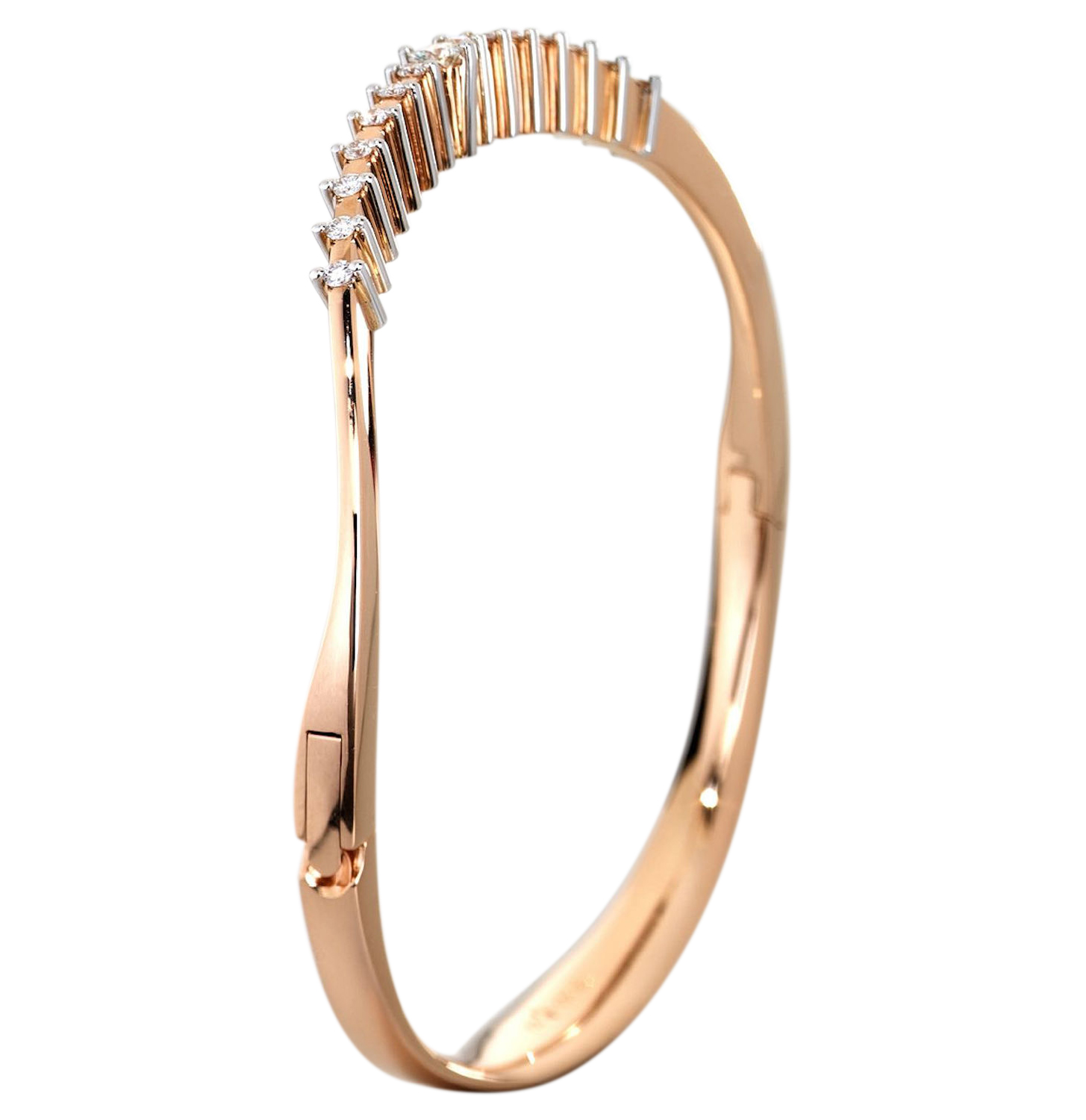 Bangle Jazz I is one version of CADEAUX JEWELRY´S innovative two-prong Collection. It is made in 18 Karat rose gold with prongs in 18 Karat white gold.