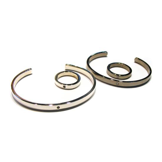 These are Bangle-Ring Couple Series which are simple and attractive jewellery for couples. The frame of the pieces are made of sterling silver and are well polished.