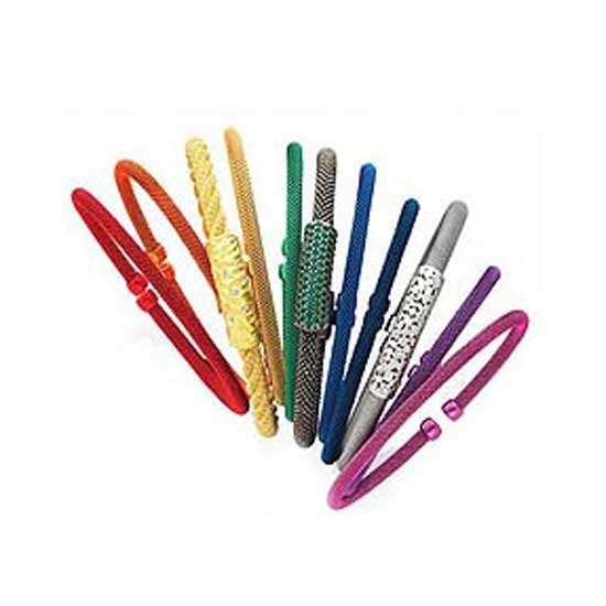 These colorful bangles feature leather or silver mesh construction. The eye-catching bangles are accented with twinkling CZ stones for added shine. These bangles are perfect to accentuate your casual style.