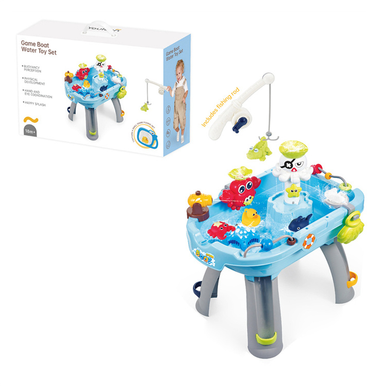 Bao Han Electric Cartoon Crocodile Fishing Game Music Table Toy for Baby Summer 2 in 1 Toys Play Water Game Toys