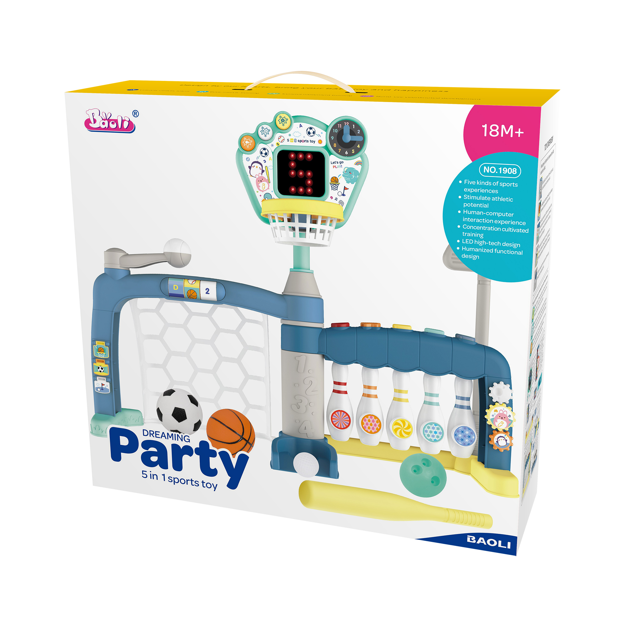 This versatile 5-in-1 sports set is the ultimate way for kids to enjoy basketball, soccer, and golf all in one fun toy! Featuring an electronic scoreboard and a variety of sports accessories, it encourages physical activity, teamwork, and friendly competition.