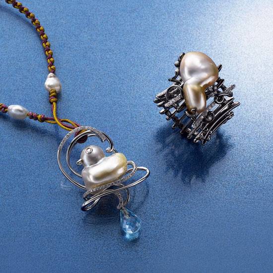 This is a set of Baroque style pearl jewellery with a concept generated from the eagerness to have natural beauty. The designer makes good use of Baroque elements and imagination to develop a series of lovingly products.