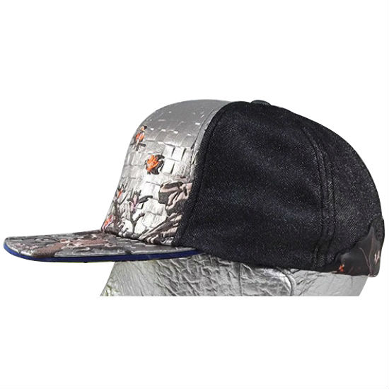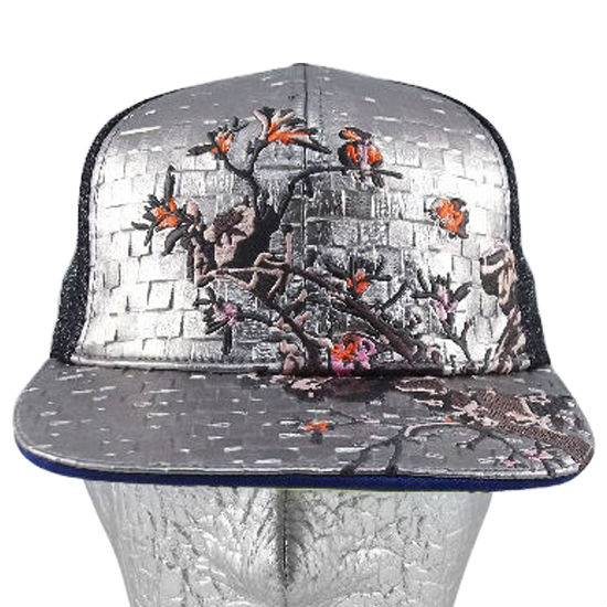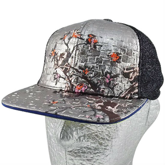 - Flat emb across front panel and peak.