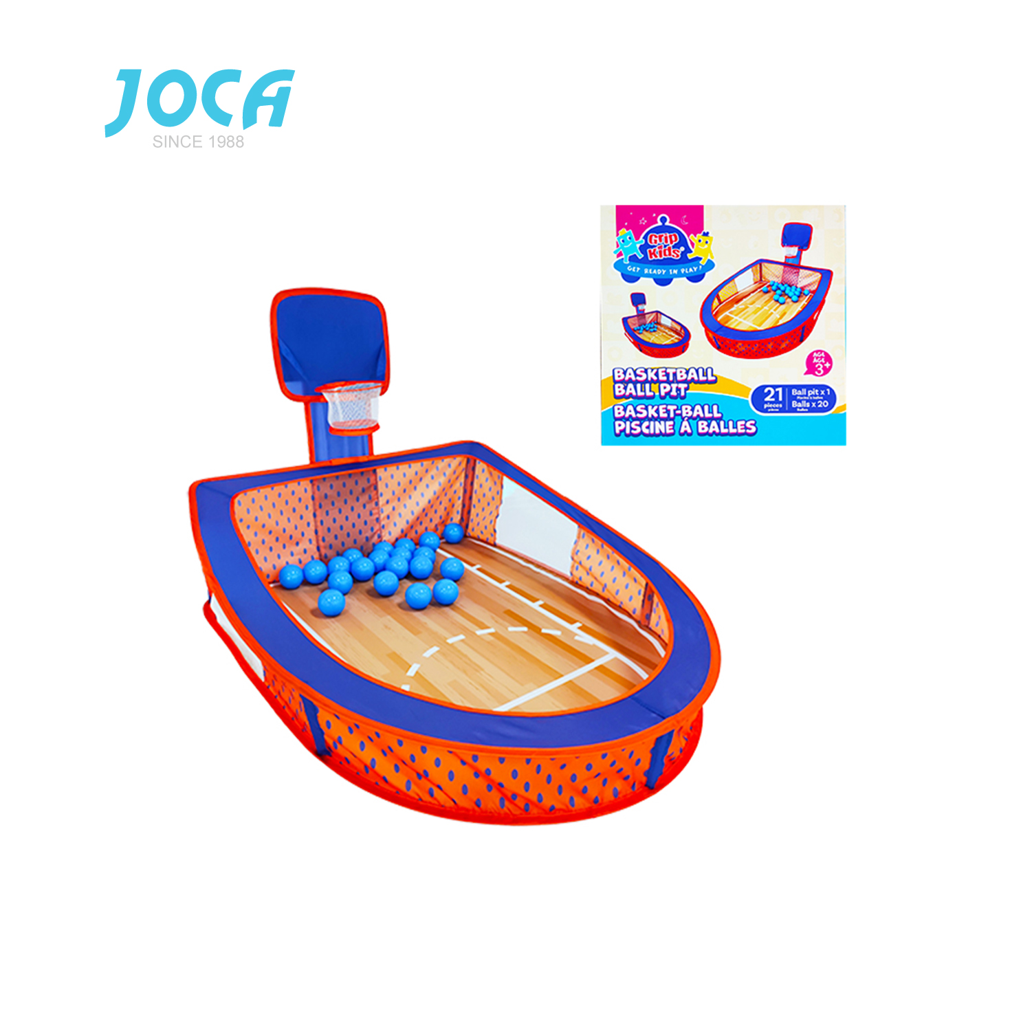 Features a basketball hoop within the ball pit, enabling children to shoot hoops and invent their own games, adding to the fun and interactive experience.