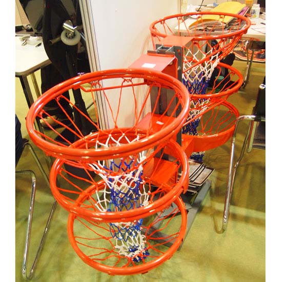 Featured here are several replaceable red basketball rings with matching nets. The quality basketball rings boast sturdy construction and a long service life. They can be securely fixed on the basketball boards with screws.