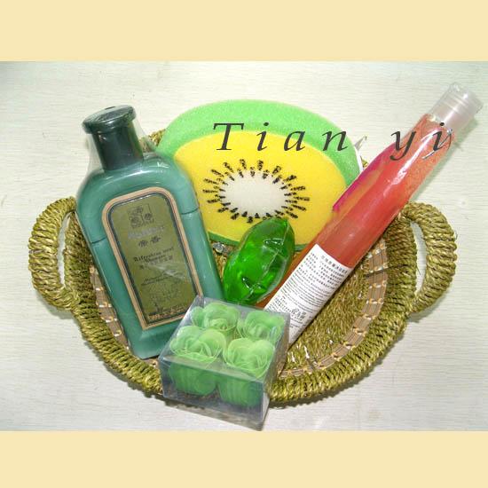 Bath gifts set is include: Sponge, Soap flower, Handmade Basketry, Bath gel, 300ml Rose aroma bath salt lotion, 500ml Mint cool shampoo.