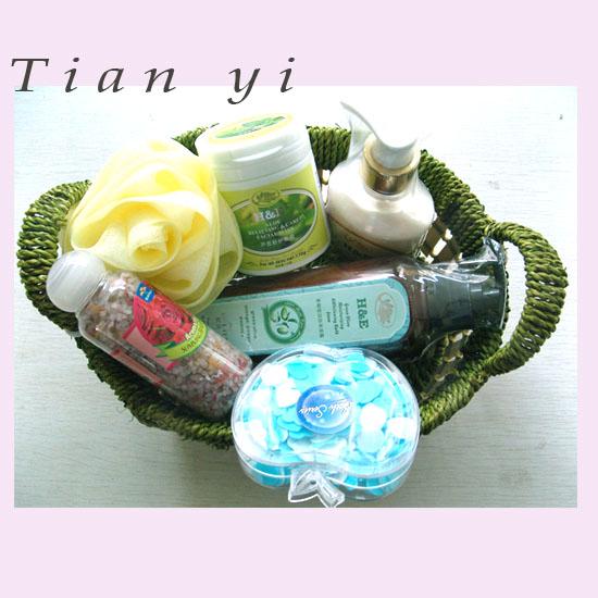 Bath gifts set is include: Scented soap confetti, Bath towel,Handmade Basketry, Bath salt,170ml/bottle aloe calm allergy facial mask, 200ml Pawpaw whitening massage milk, 420ml Green Olive Moisturizing & Whitening Bath Wash.
