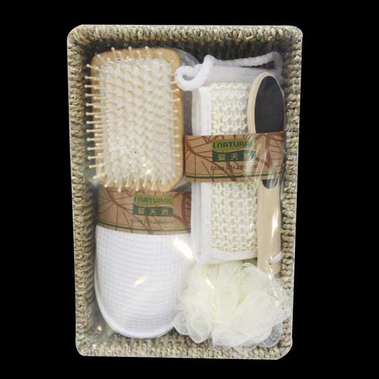 This exclusive bath set includes a pair of bath slippers, a back strap, a bath scrubber and a skin remover. The bath set is great for exfoliating your skin and clean your whole body. The 100% natural fabric will not cause allergy on your skin.