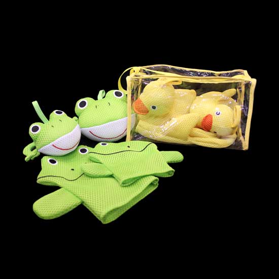 These bath toys come with green frogs and yellow ducks for a brilliant touch. They can absorb water and float on water. With a transparent bag, these cute bath toys can be easily stored.