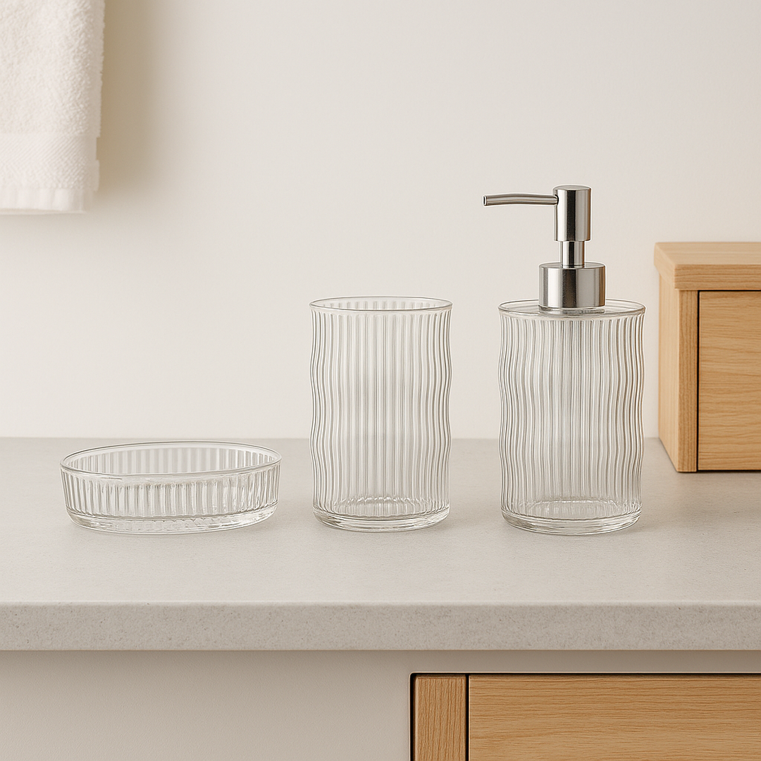 This three-piece bathroom set adds serenity and elegance to daily routine.