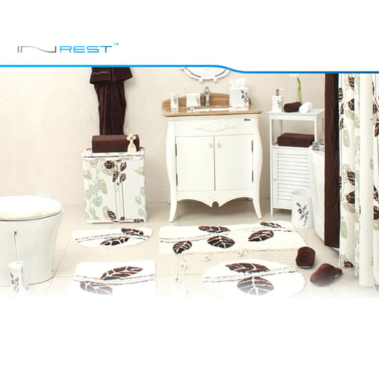 This bathroom collection includes bath mats, towels, hooks and more. The exquisite pieces are printed with leaf designs. There are different attractive colors for you to choose from.