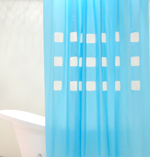 Enjoy a refreshing shower by looking at this bath curtain. It boasts a sky-blue color tone, which is topped with multiple square in white color for offering you a relaxing touch.