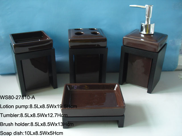 - The set includes a lotion pump, a tumbler, a soap dish, a toothbrush holder.