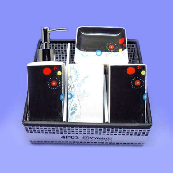 This is a bathroom set with a trendy and elegant appearance. The set comes with a two-tone design with contrasting patterns for added style. With excellent craftsmanship, it makes a great complement to your stylish bathroom.