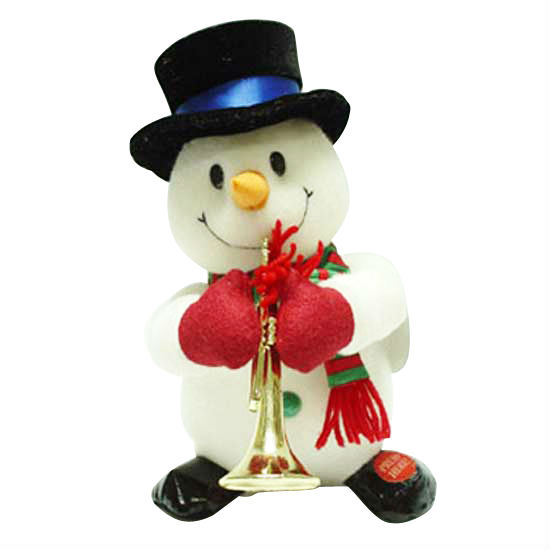 Shown here is an adorable snowman decoration with a battery-operated design. It dances and plays Christmas music with a trumpet. This battery-operated snowman is a great decoration to enhance festive mood when the day draws near.
