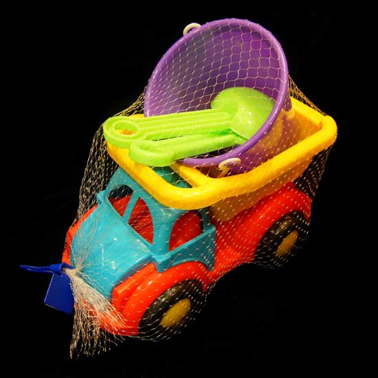 Your kid is sure to be mesmerized by the vibrant colors of this beach toy set. The toy set comes with a truck, a bucket and sand tools. Kids can craft their ideal sand castles with these fun toys.
