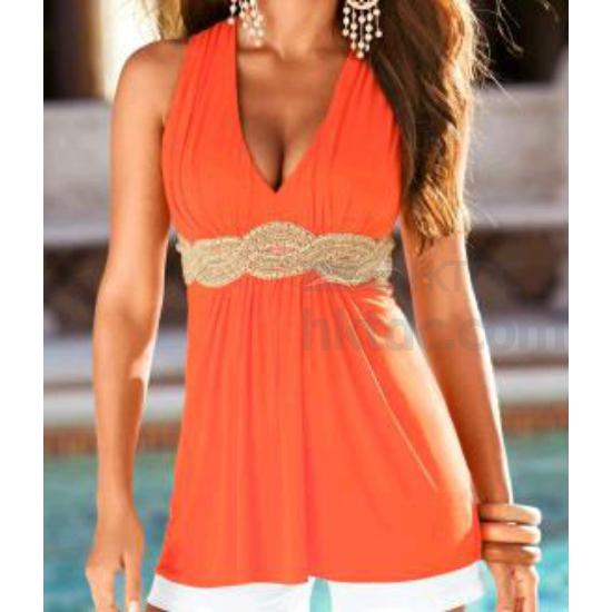 Beaded knit top with an embellished empire waistline and crisscrossing back.