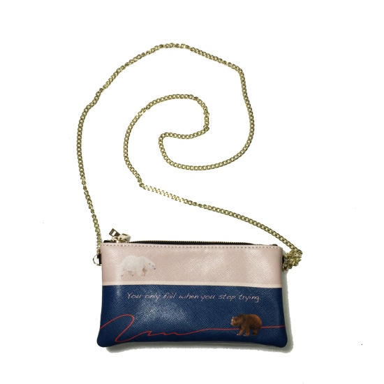 Chic and practical, this leather clutch makes a wardrobe staple all year round. The two-tone design is adorned with one polar bear and one forest bear prints. This shoulder bag comes in a space-efficient rectangular shape, while zipper fastening holds interior items from falling out.