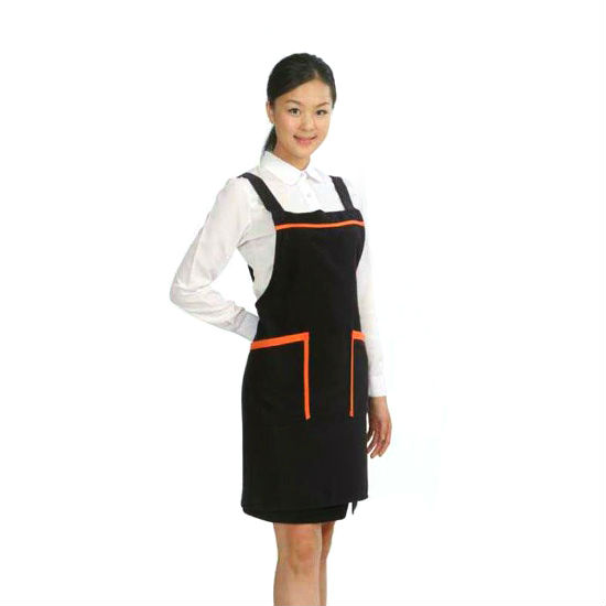 • Demonstrated is a classy bib apron in bright colored appearance.