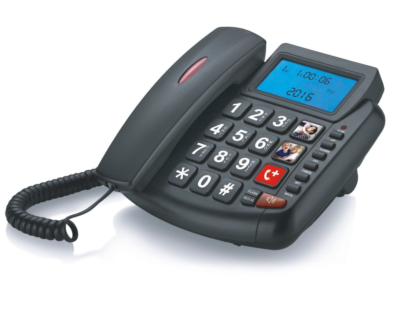 Large Button Telephone PA008 Is a Easy To Use Fixed Telephone For Seniors With Blue Backlight And LED Indicator For Incoming Calls. You Can Stay Connected With Family And Friends With 3 Group One-Touch Memory Big Picture Buttons. This Amplified Telephone Is Ideal For Hearing Impaired Seniors And The Flashing Ringer Led Indication On Handset Makes It a Great Phone For Visually Impaired. This Big Key Telephone Is Perfect For Older People.