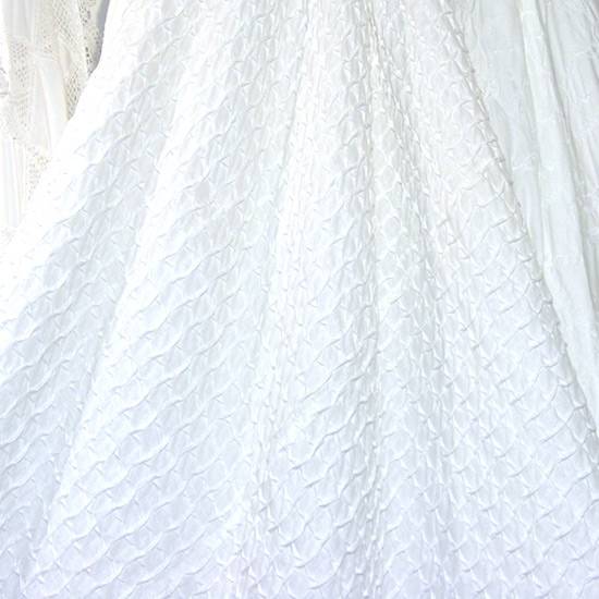 This is a piece of bed cover in pure white. The bed cover is 100% cotton made with a soft texture. Other patterns are available for the cover.
