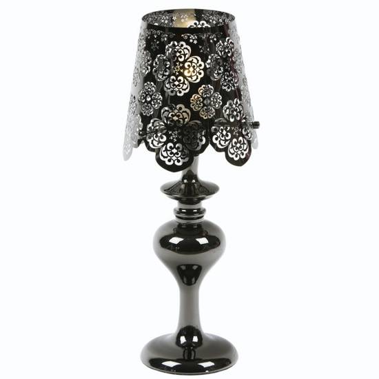 The elegant table lamp features durable metal-plated body for class and style. The metal shade comes with sophisticated plating in floral patterns. This stunning table lamp simply makes a perfect match with your bedroom decor.