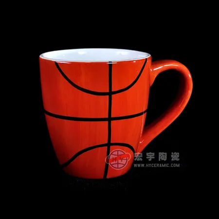 Displayed is a beverage mug coming with a basketball image. It features ample capacity to hold both hot and cold beverages. The handle is ergonomically made for a comfortable grip.