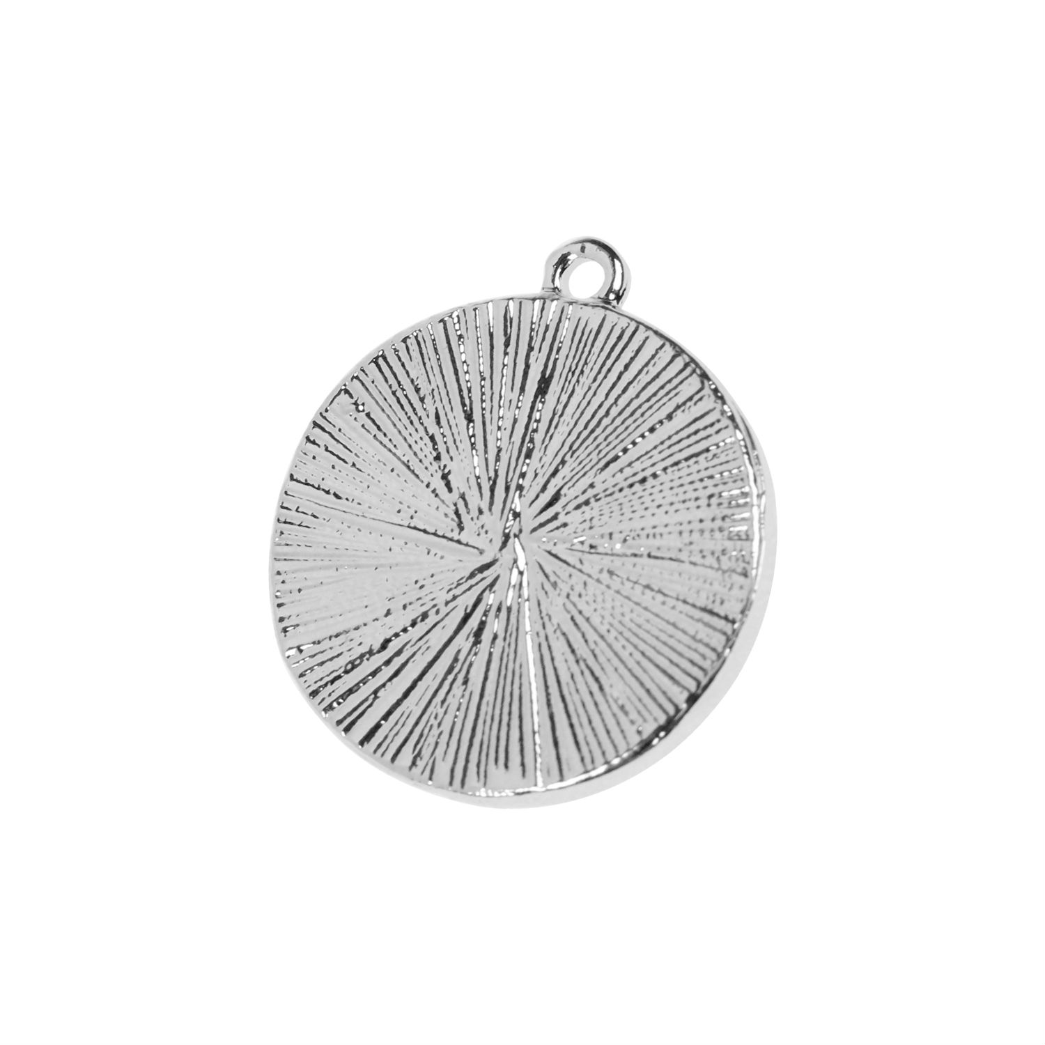 Complete your jewelry craft projects with this bezel. It is designed in a circular shape with smooth edges. One side is textured with radiant line while another side is finished with a glossy surface. It comes with a hanging loop on the top and provides multiple sizes for versatility.