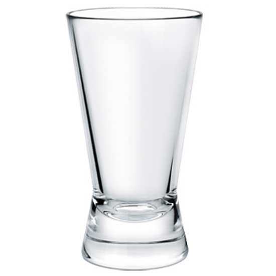 The biconic shot glass has a volume capacity of 410cc. The skilled craftsmanship provides it with a delicate finish. This shot glass makes an exceptional piece of tableware.