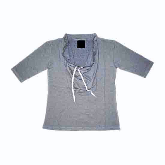 This is a ladies' knitted big collar sweat shirt with a mid-sleeve design. The loose-cut design provides ultra comfort for wearing. This knitted sweat makes a great item to showcase your unique taste.