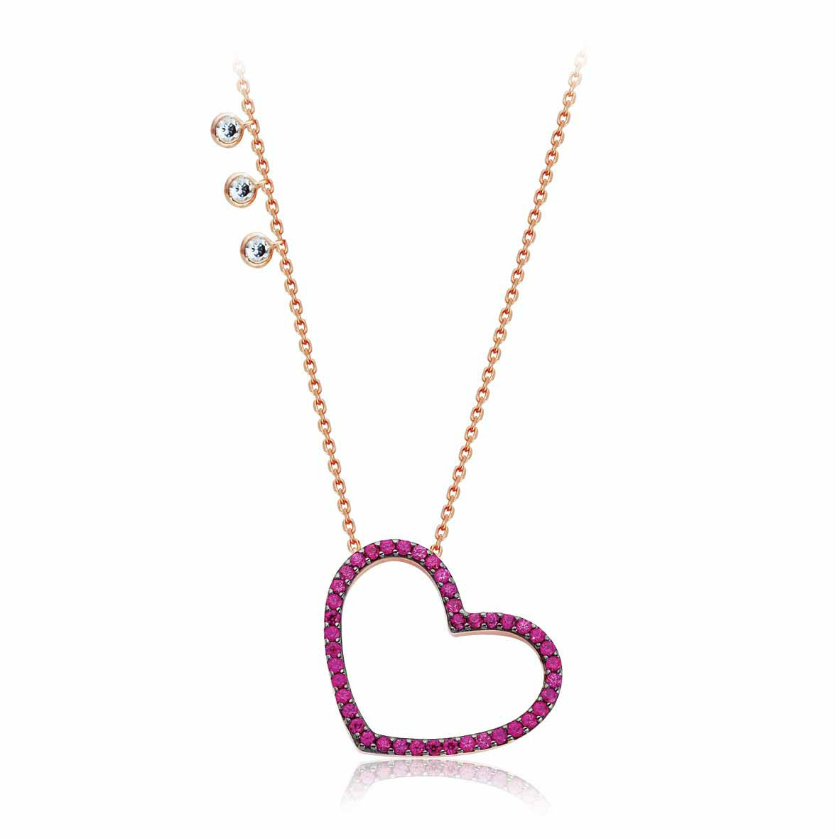 925K silver necklace with ruby zirconia, rose gold plated.