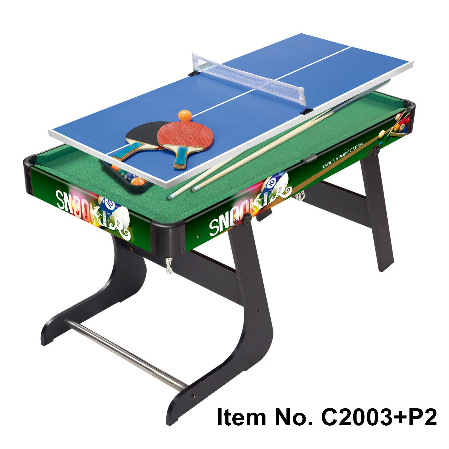 - Each set includes 1 billiard table, 1 ping-pong table, 2 cue sticks, 1 set of billiard balls, 1 ping-pong ball and 2 table tennis rackets.