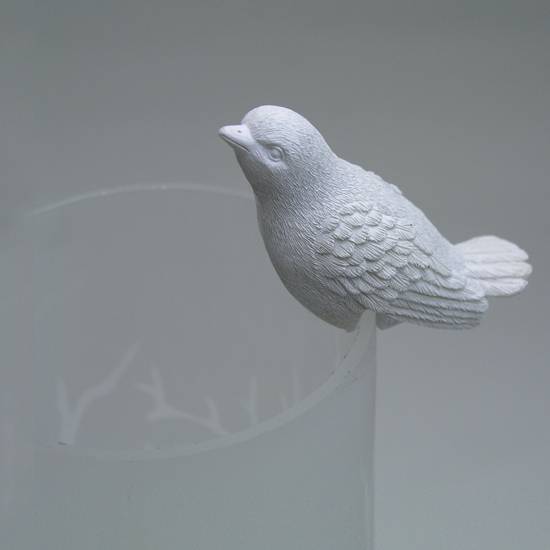 This decorative bird can be used with cups. The bottom of the bird is supposed to clip on the rim of a cup. Although the bird is in a single colour, the detailed design shows that it is not an ordinary decoration. The feather, eyes and mouth of the bird is shown clearly, which demonstrates the wonderful craftsmanship of the designer.