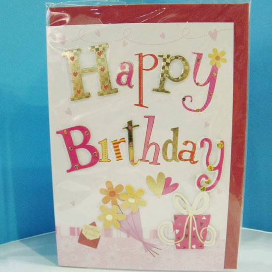 This delightful birthday card features funky letters and mounted 3D embellishment. The greeting cards are available in different sizes and for different purposes. With glitter and adorable details, this gorgeous greeting card is the ideal way to deliver love and best wishes to your beloved ones.