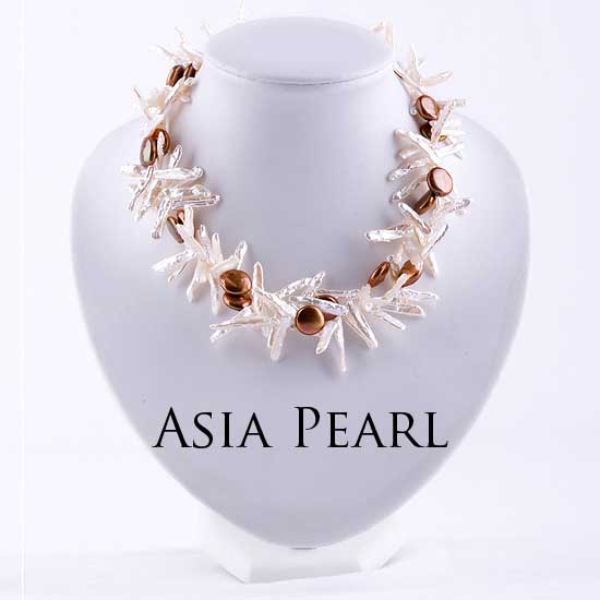 The freshwater pearl necklace features dazzling irregular Biwa pearls. The necklace comes with shiny luster in highly polished finish. This beautiful pearl necklace adds a touch of elegance to any wardrobe.
