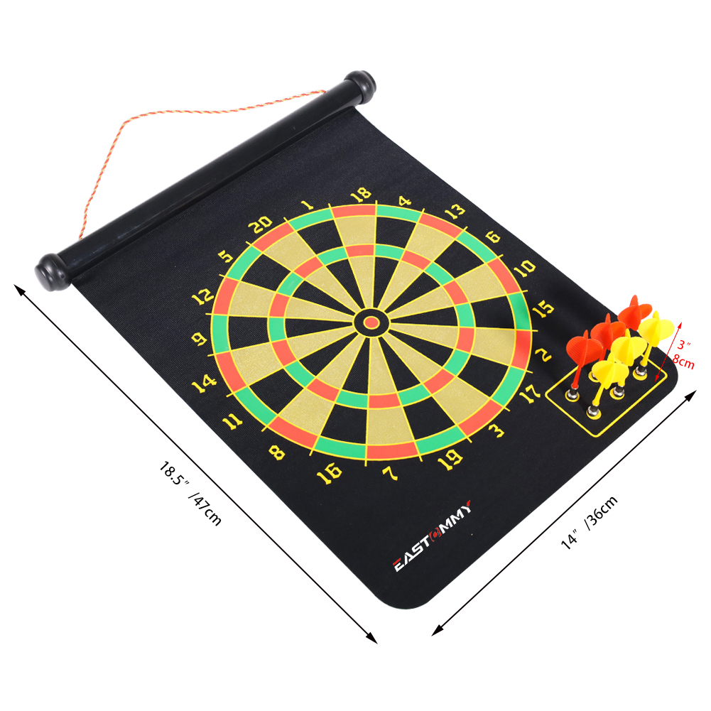 A set includes a magnetic double-sided board and 6 darts. Size Information