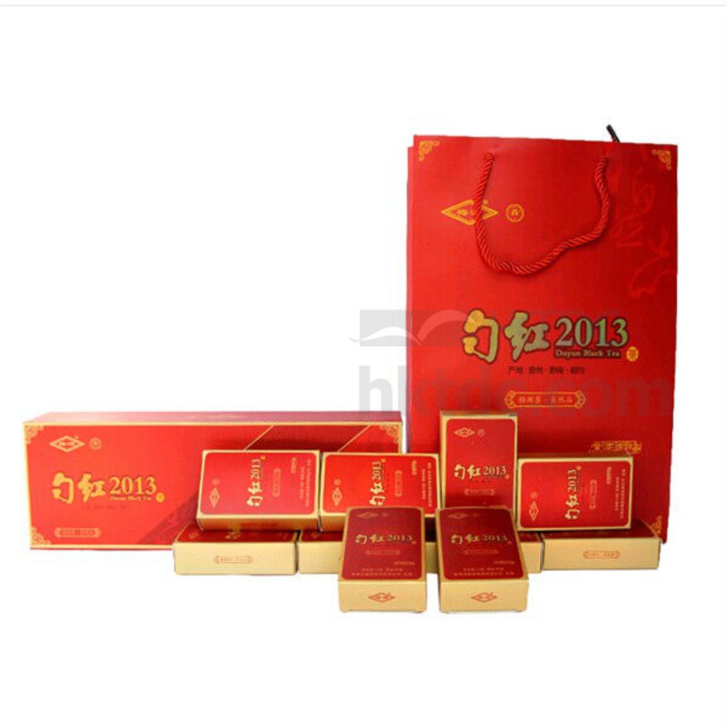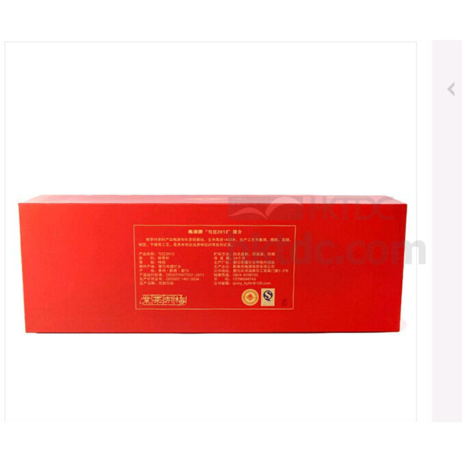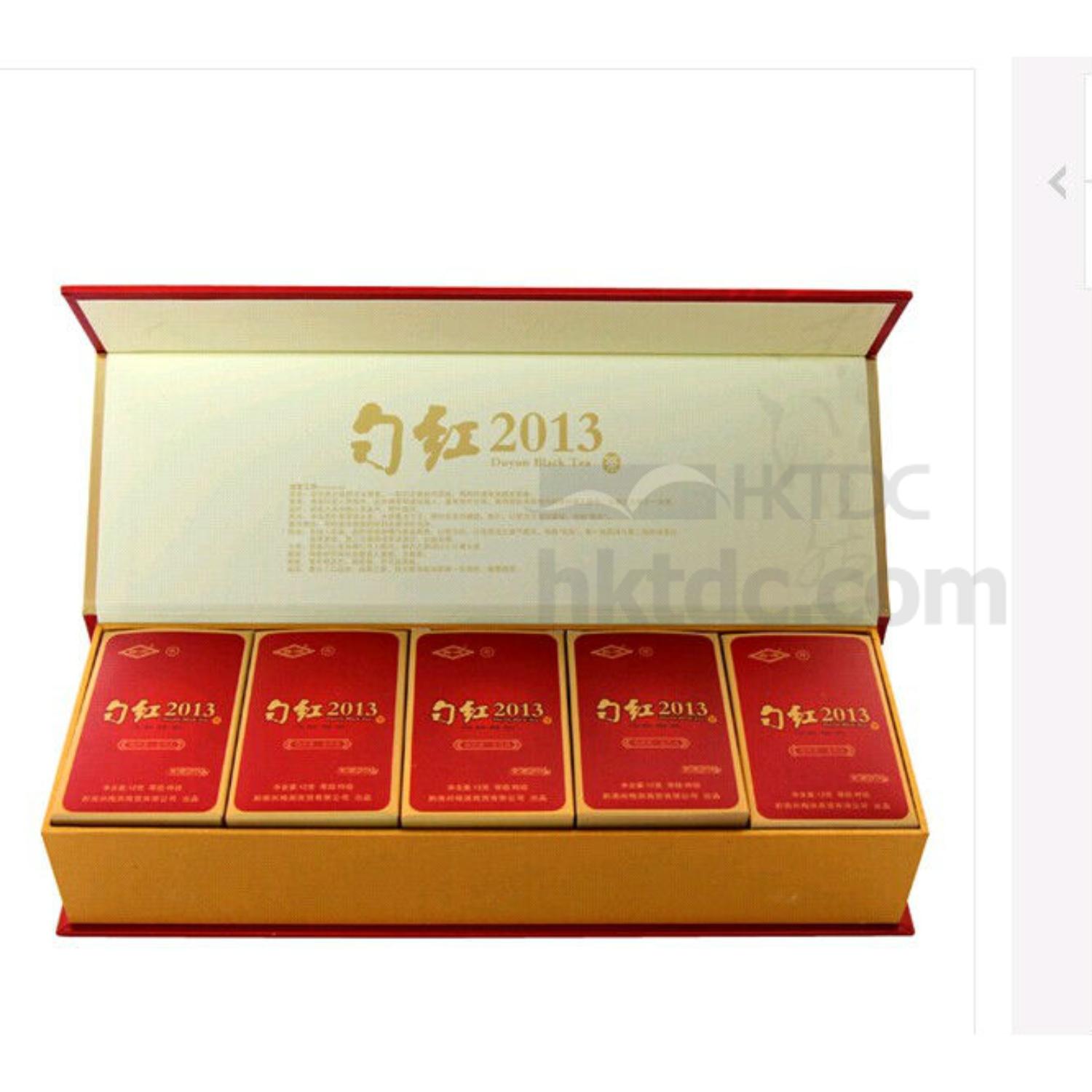 Packed in a red rectangular gift box.