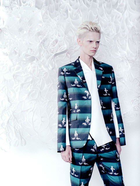 Top: blazer with our own designed Jacque fabric with invisible zipper at the sleeves.