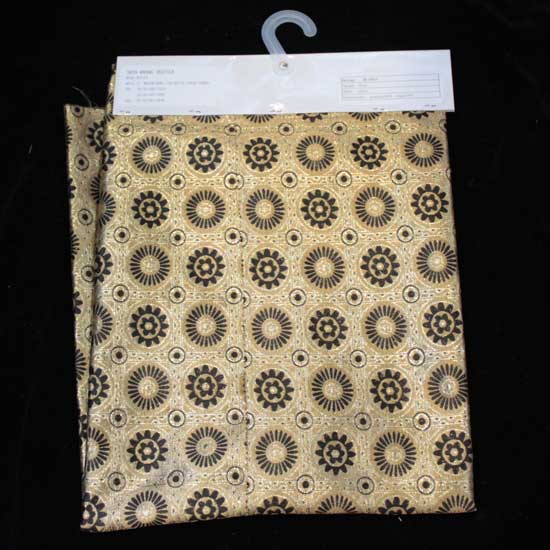 The featured polyester fabric flaunts circular patterns for a unique style. The metallic threads make the fabric more eye-catching. The fabric is suitable for household textile products like curtains.