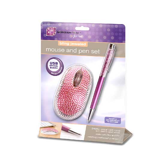 This is a bling mouse and pen set ideal as a gift. Each item features twinkling details to attract onlookers’ attention. This practical mouse and pen set is sure to delight the gift receivers.