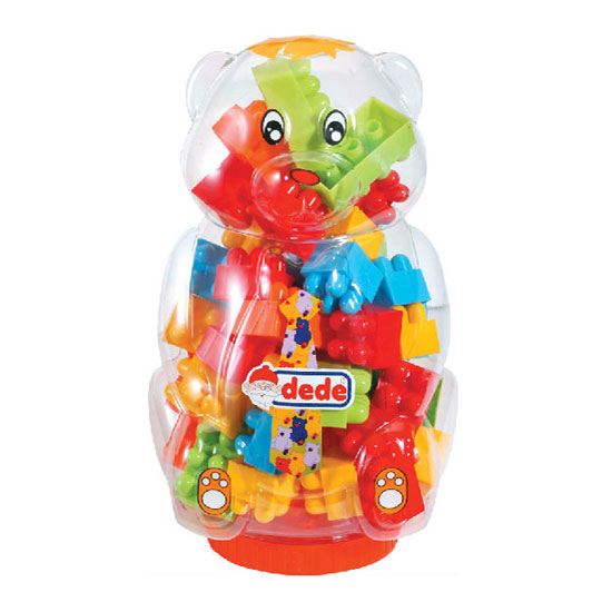 This block set is made of quality and durable plastic. The vibrant colors will surely make it a kids' favorite. This block set has a plastic bear-like container included.