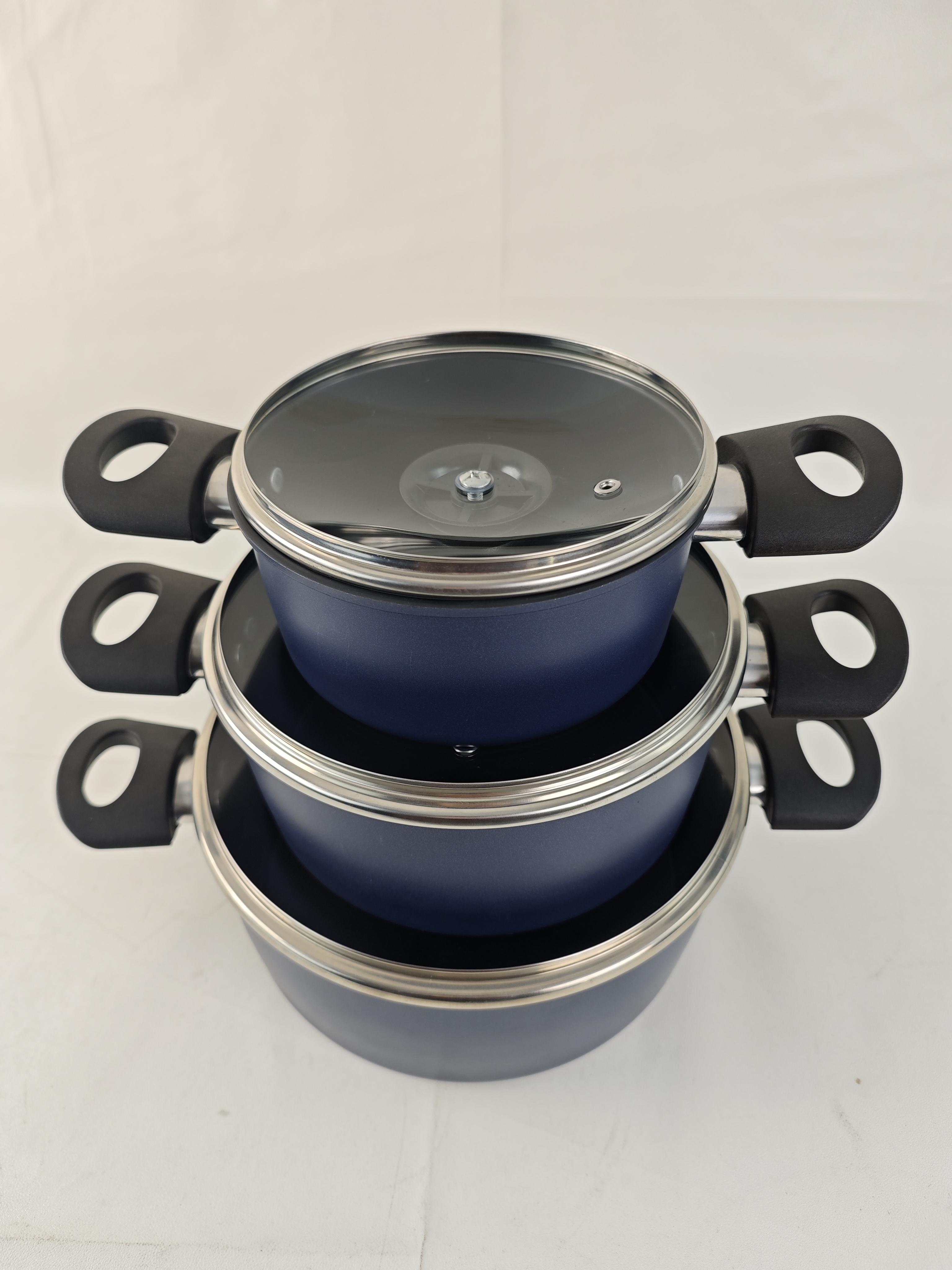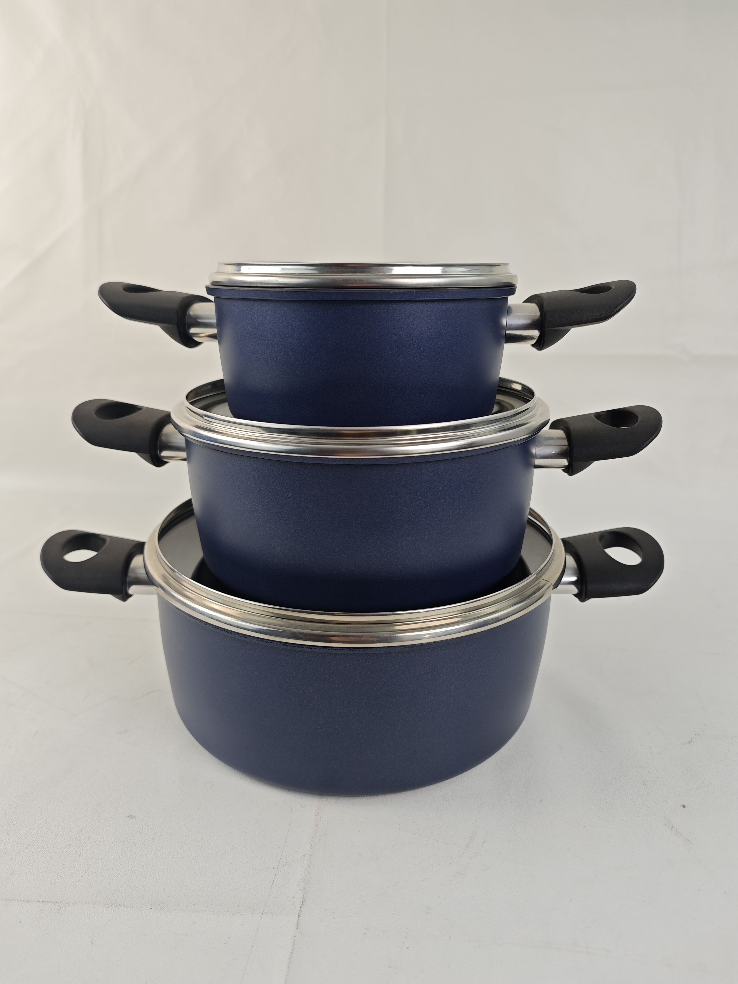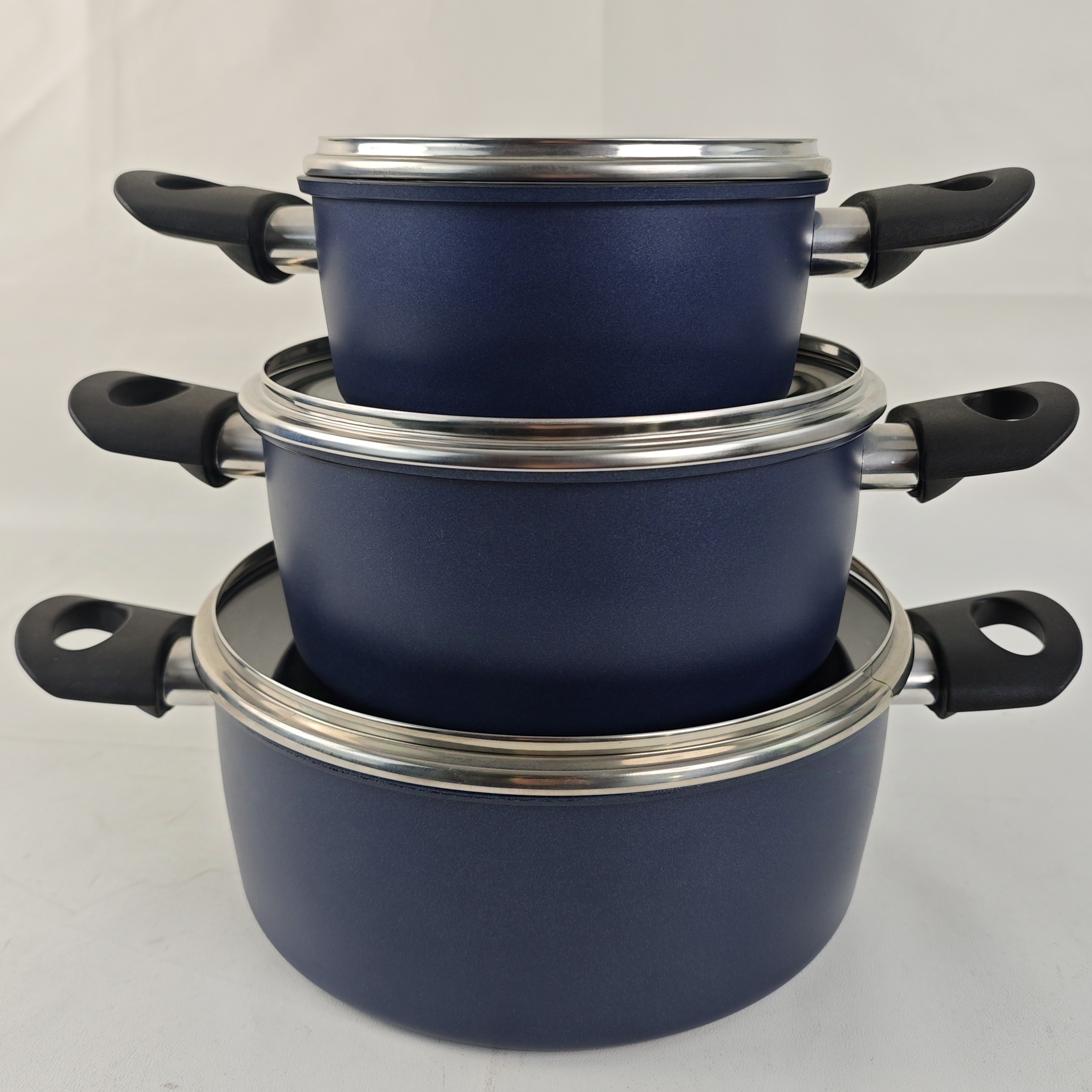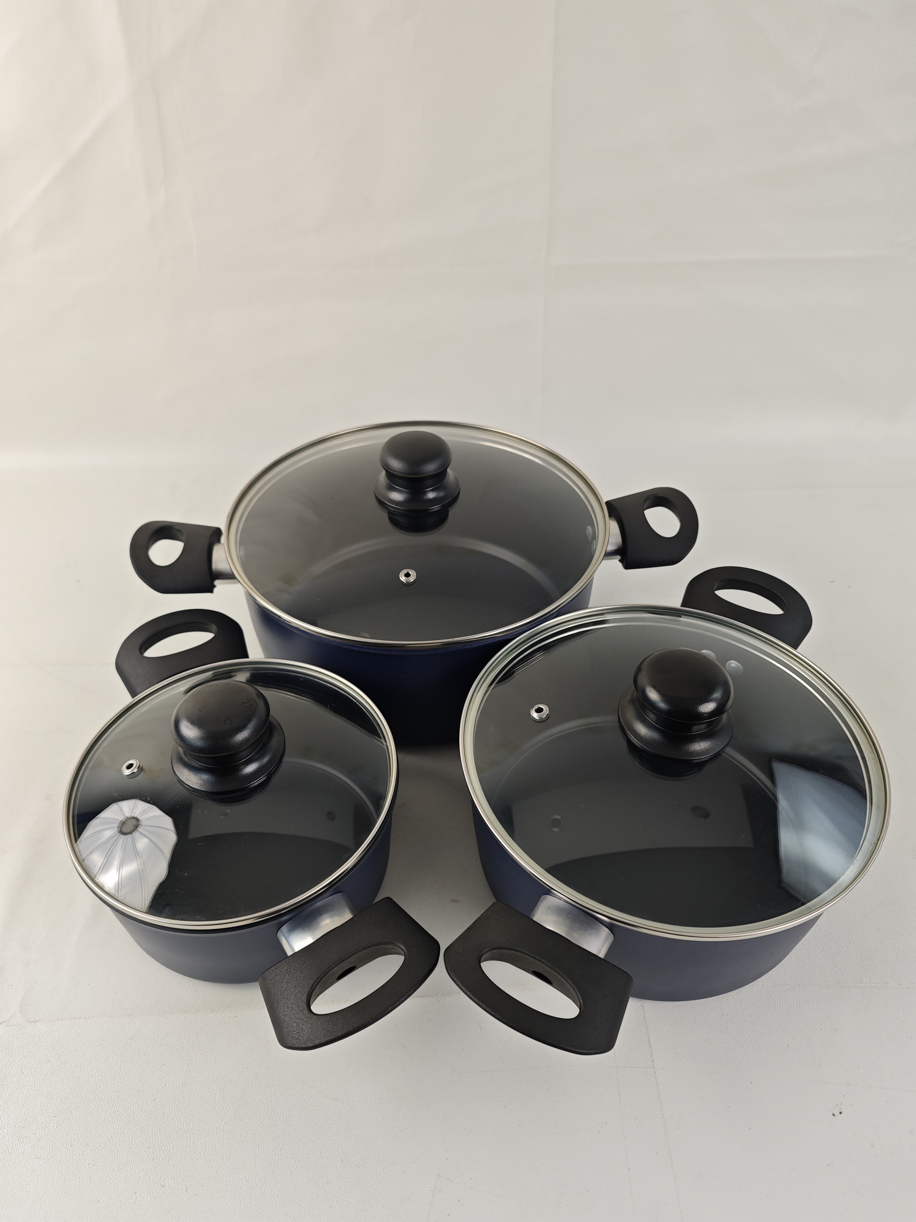 Blue Classic Home Cooking Casserole Set Carbon Steel Glass Lid Flat Bottom Composite Materials