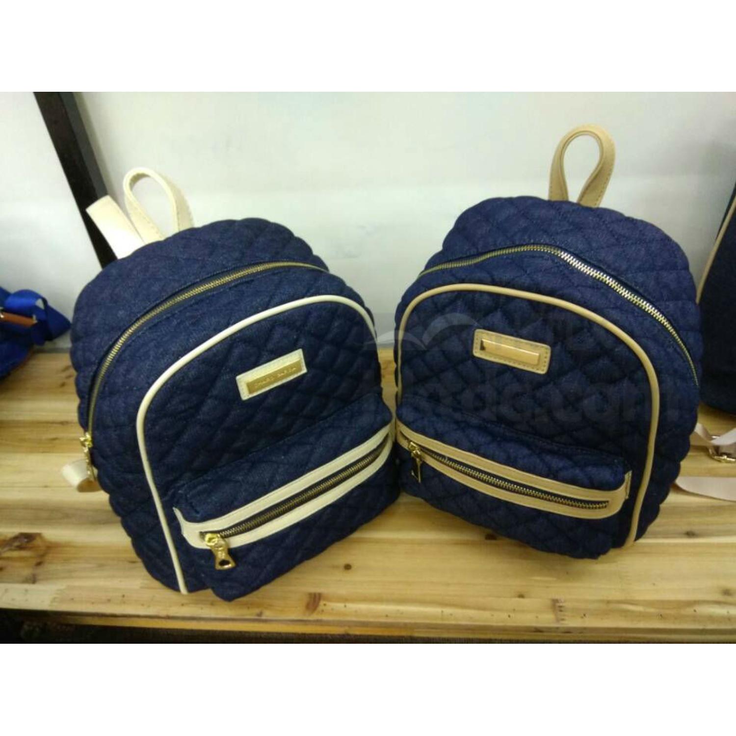 These are bags which include a backpack or knapsack, a handbag and a briefcase. The briefcase has both shoulder strap and hand holder for holding documents or a laptop.