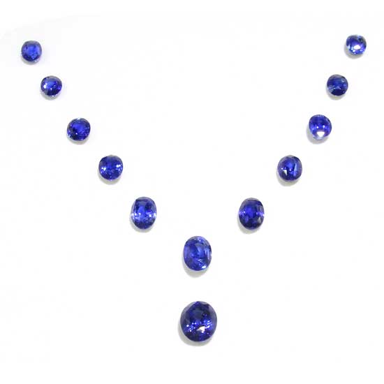 Shown here is a set of 12 meticulously sourced blue sapphires in an engaging oval shape. They allure you with their attractive bluish hue and ceaseless luster from the facets. Simply make a grand-style necklace with these precious charms.