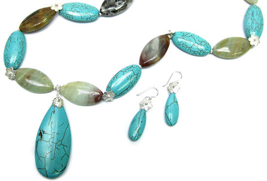 Blue Stone and Amazonite Sterling Silver Necklace Set