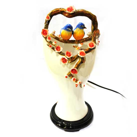 Shown here is a lamp flaunting a design of two sweet blue tits resting on the branch. Floral patterns add extra spice to the whole design. This gorgeous lamp serves a great addition for showcasing your noble tastes.