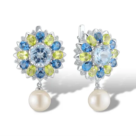 Blue Topaz and Pearl Diamond Earring