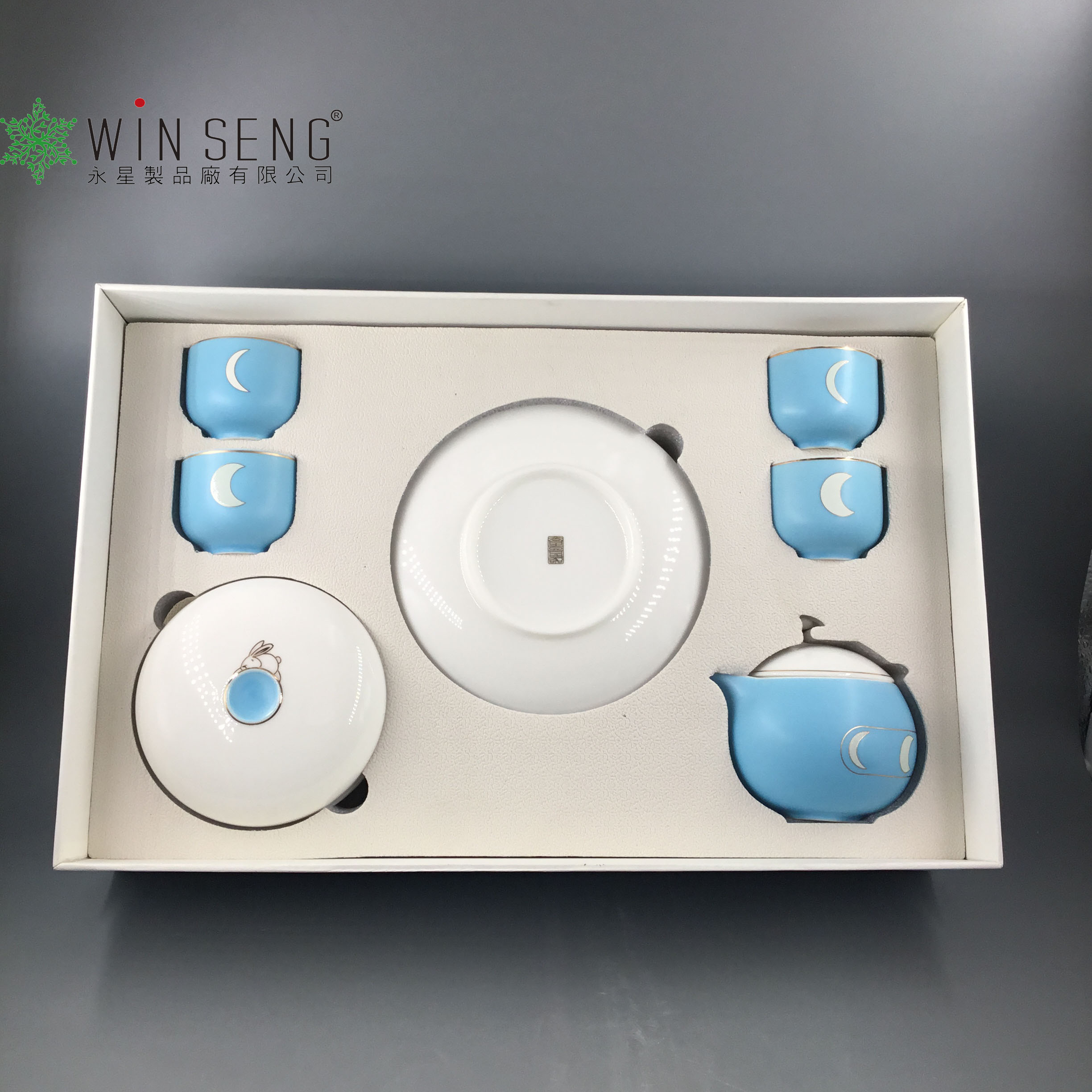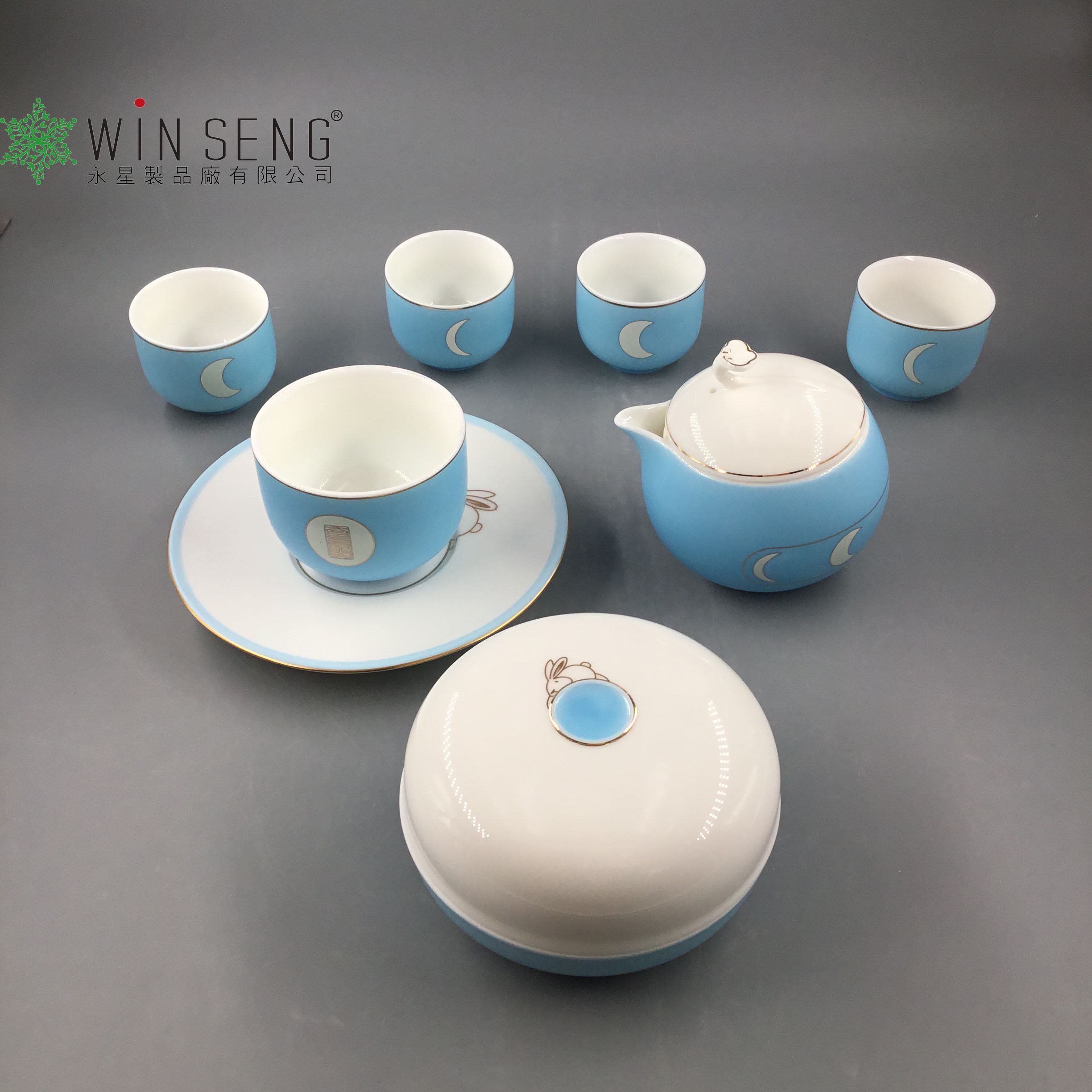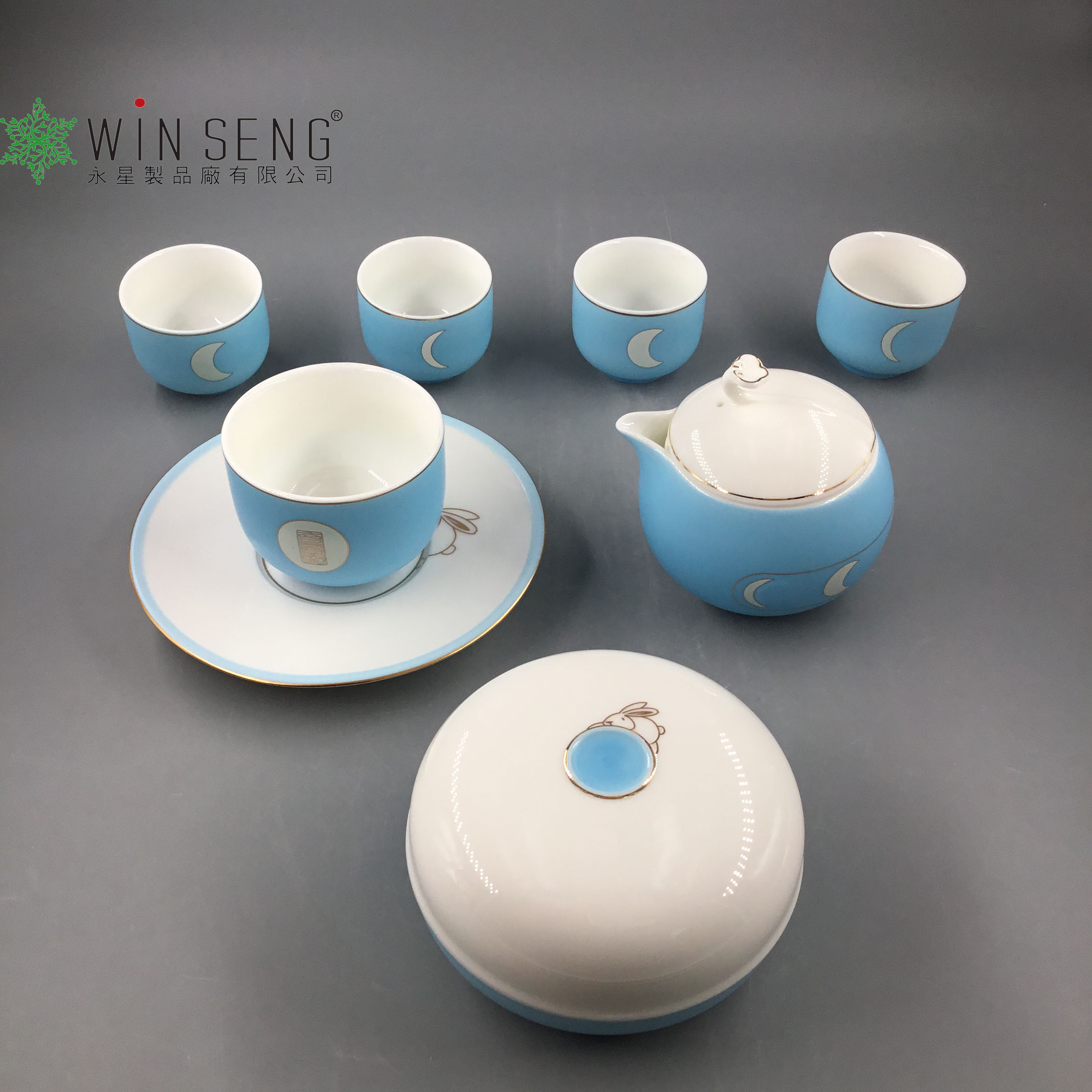 • Item Name: Blue with white rabbit jade porcelain coffee cup set