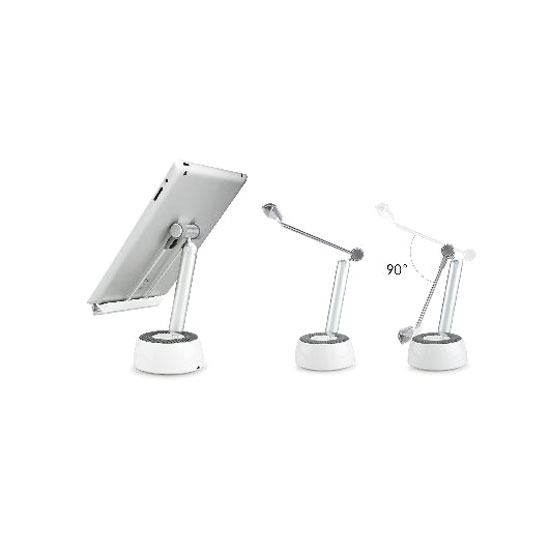 - 90-degree tilting arm stand, compatible for both vertical and horizontal tablet positions.