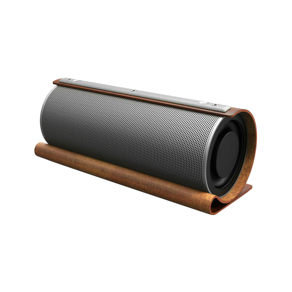 Add a stylish touch to your interior space while enjoying quality music with this Bluetooth speaker. Rendered in a sleek, cylindrical shape, the speaker realizes a retro noble design with the real leather cover. It pumps out powerful 3D stereo sound and gives bass a boost to keep your daily soundtrack alive.